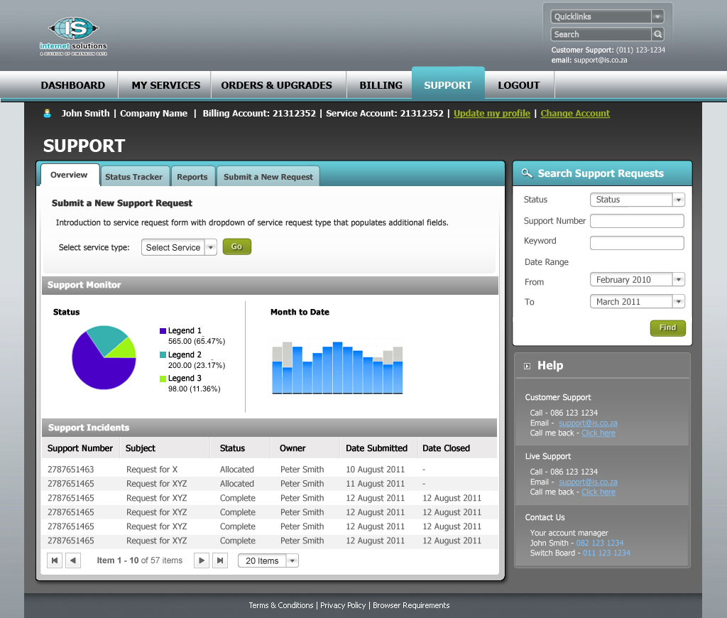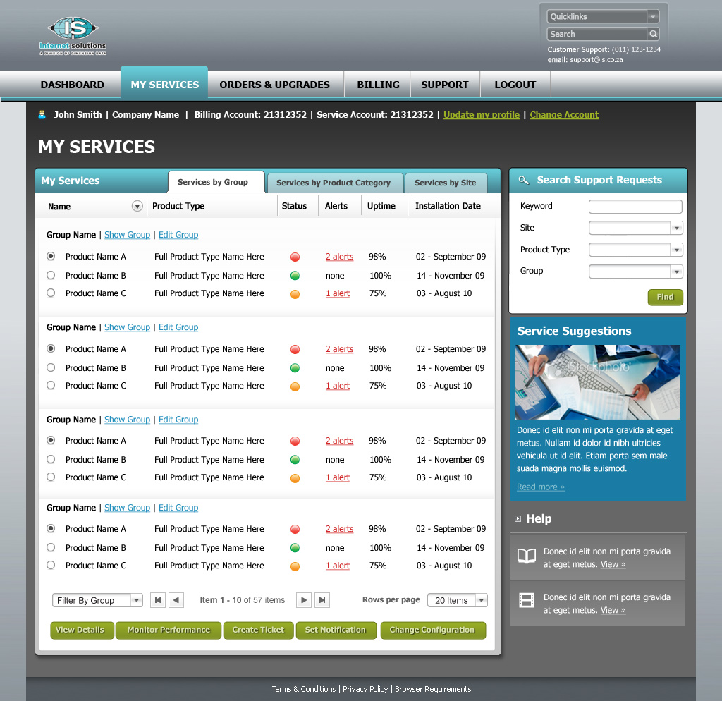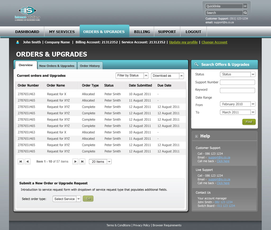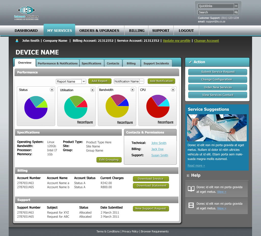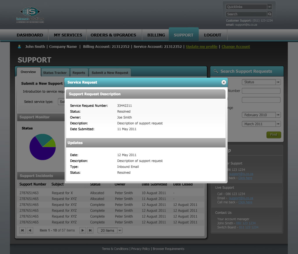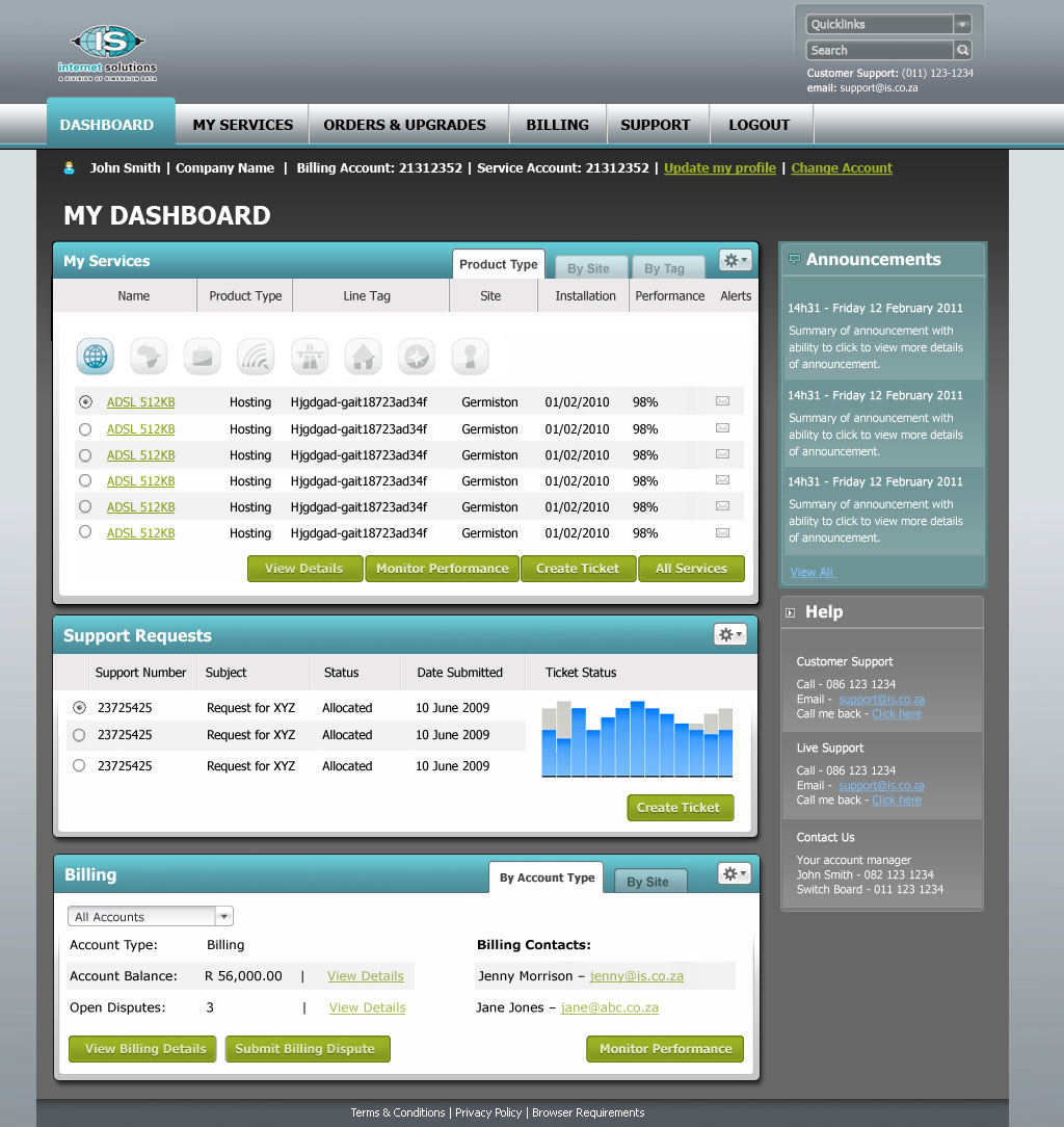 Internet Solutions required a fresh, easy to use, client portal that would allow clients to maintain and self-manage hosting and internet products they had purchased. I was responsible for the UI/UX design.